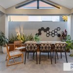– The kitchen island bench overlooks the spacious living and dining area with sliding door access to the beautiful pitched roofed alfresco area and lovey easy to maintain rwar garden